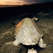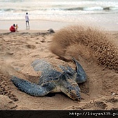 海龜媽媽在黑夜裡爬到自己出生的海灘後,