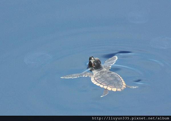 海龜媽媽頂著大肚子,用槳一樣的扁腳,游啊!游啊!